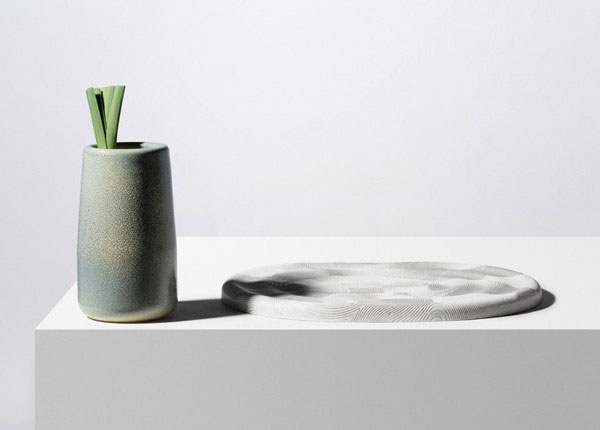 他的设计颠覆了瓷器表面光滑,仅在色彩或图案二维尺度上做出变化的传统。无论是果盘、花瓶、笔架或仅仅只是装点桌面的小摆件,独创的塑形技术赋予了这些器皿凹凸起伏的肌理,而除花瓶外的所有器皿的底面都是平滑完整的,这也意味着其拥有了批量浇铸生产的潜力。而设计师也将在这一系列作品的基础上继续深化,挖掘陶瓷的无限潜力。