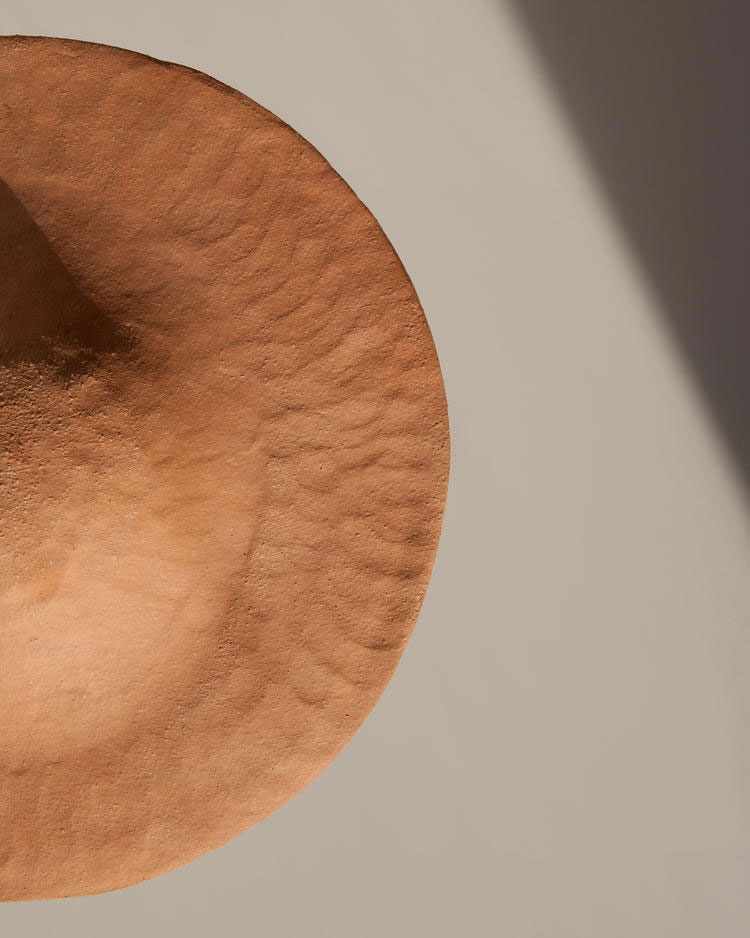 Alien,Dome 和 Pyramid 三款台灯的设计者,是陶瓷艺术家 Ariana Heinzman 。灯罩采用手工捏制的粘土,未上釉,保留了粗糙、不完美的手工纹理。设计师的意图是把台灯看作桌面雕塑,即便没有开灯,也可以作为装饰物。一款是类似于碗状的圆顶台灯,一款是类似于遮阳草帽的台灯,另有一款金字塔形状的台灯。