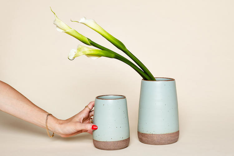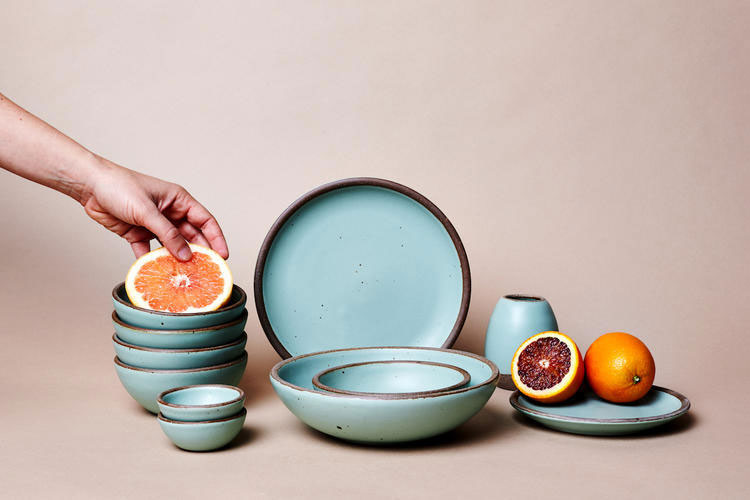 燃气窑还允许工作室试验各种颜色的陶器,这个新系列包括花器、餐具和杯具,由来自北卡罗来纳州皮埃蒙特地区的粘土制成,不均匀分布的棕色斑点,使得每一款陶器都是不完美的,也是个性化的,仿佛可以是你手中的亲密小玩物。