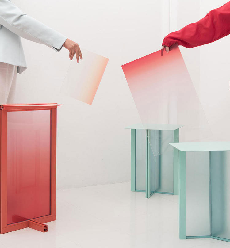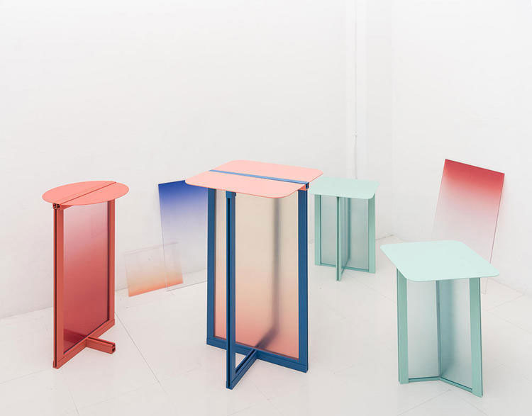 设计师 Mew Kamonwan 和 Lalita Kitchachanchaikul 最近在曼谷创立了工作室 Femme Atelier,试图实验和重新构想日常物品。最新推出的 Framemust 系列,包括两张桌子和两个凳子,以传统的门框和窗框为灵感,用挤压铝型材制成,用渐变色彩作为饰面,搭配经过粉末涂层处理的铝制部件,创造出一组色彩丰富多样的作品。