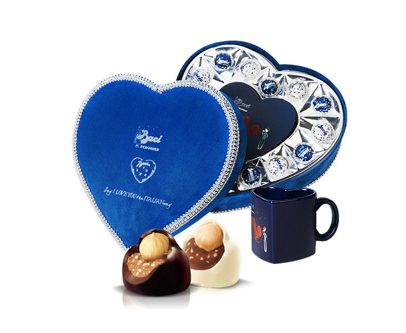 BACI,意语“吻”的复数。作为意大利著名的巧克力,深蓝色心形盒子,漂亮的银色锡纸包装,宛如星星闪烁的夜空,包裹着黑白果仁巧克力。每颗巧克力都附着一张写有意法西英德语的爱的箴言。所有的巧合都不是偶然,意大利人的浪漫尽展淋漓。