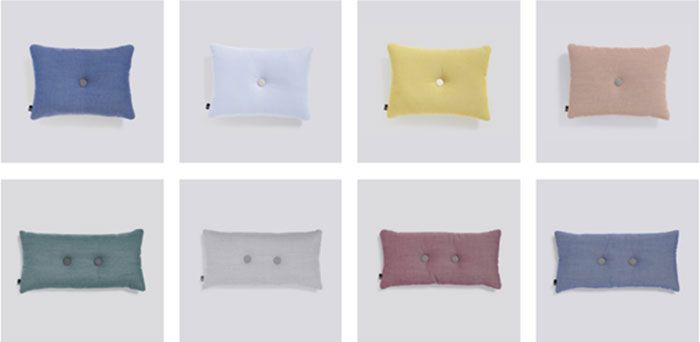 HAY最具代表性的靠垫系列,以同色面料包裹钉钮为其特色,已成为了许多家庭的设计经典。这款由Kvadrat羊毛为主的混纺织物面料制成,提供了丰富的色调和纹理选择,并拥有出色的耐用性。有两种尺寸可选、配以一或两颗纽扣的设计,俏皮可爱。